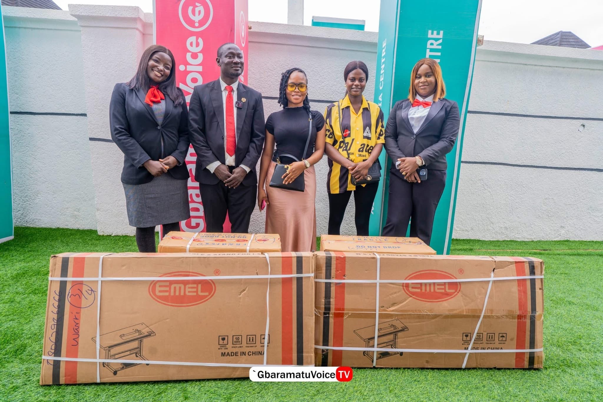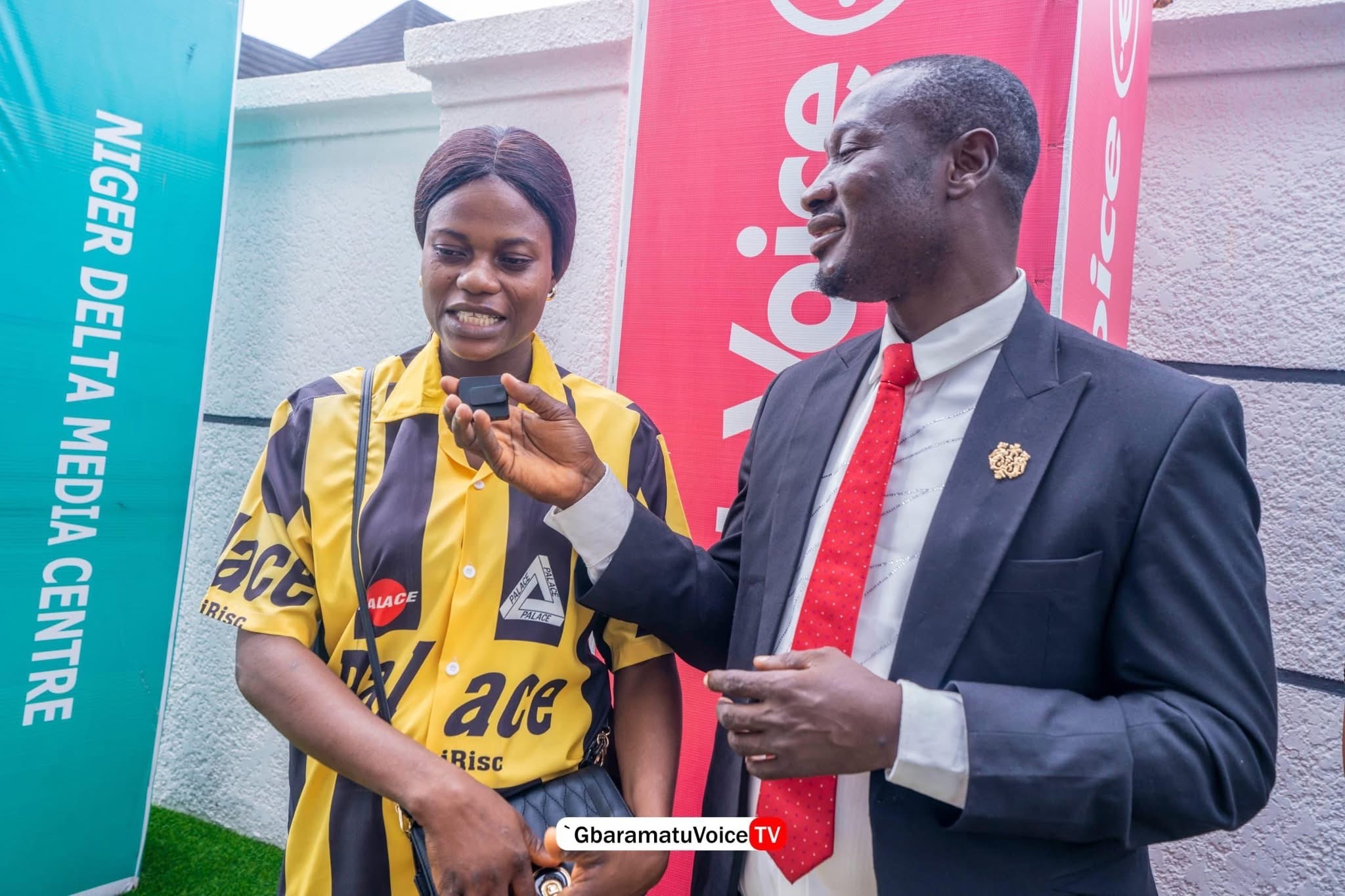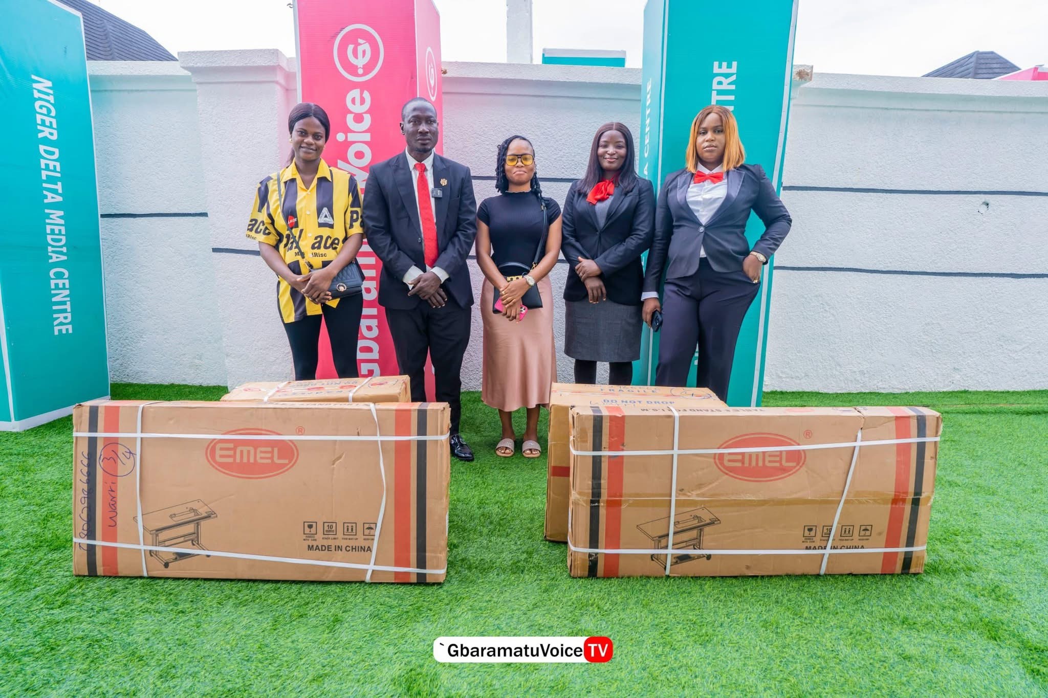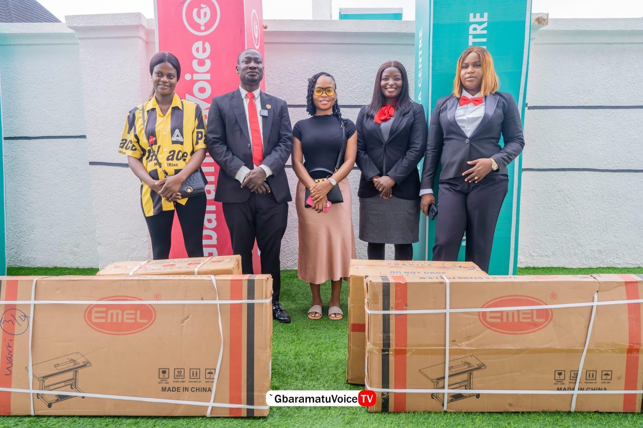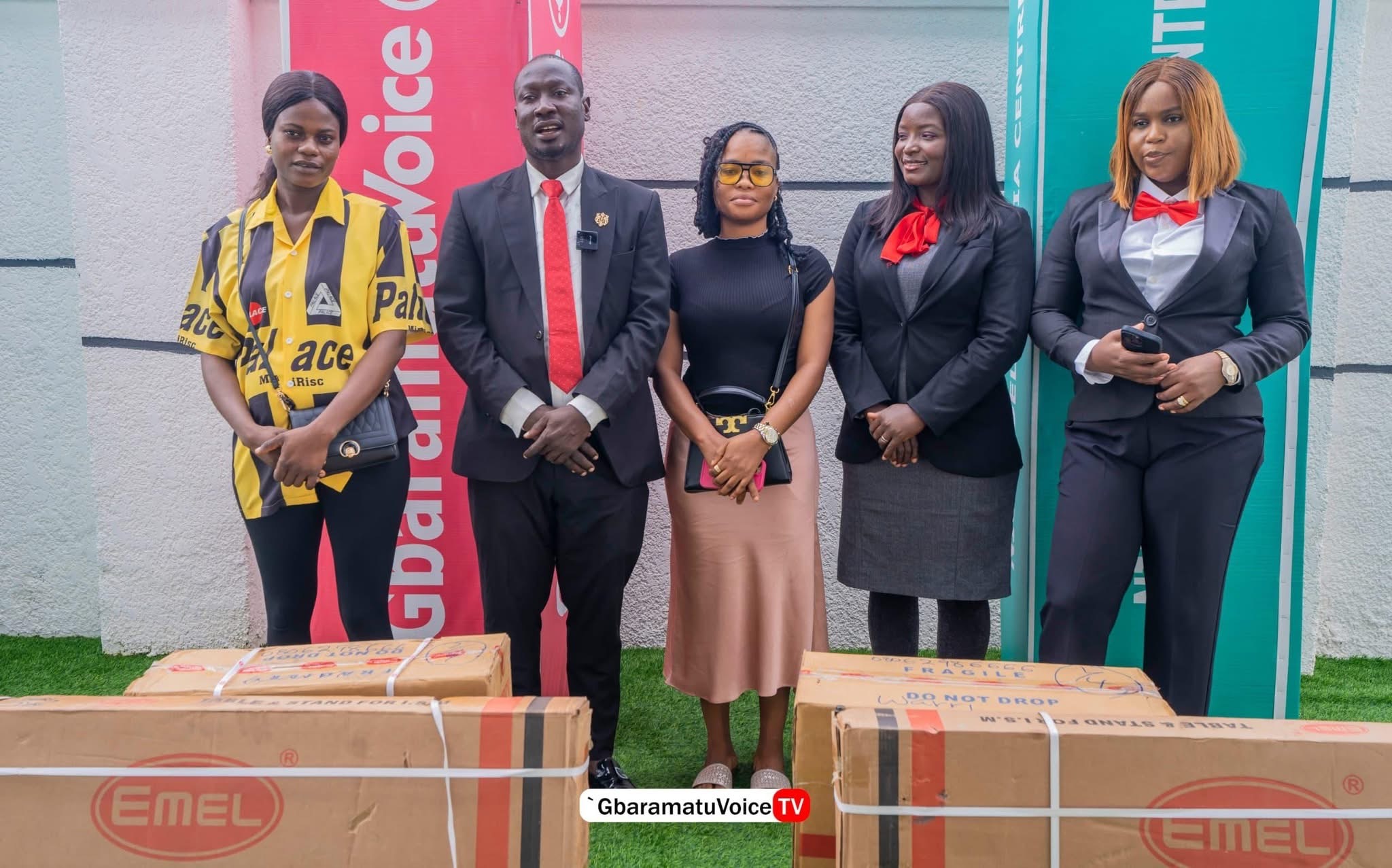 The official presentation of the equipment was conducted by Mr. Enaibo Asiaye, Managing Editor of GbaramatuVoice, alongside the hosts of the Kestin Pondi Show, Mrs. Vanessa Abai and Mrs. Aghogho Inikor.