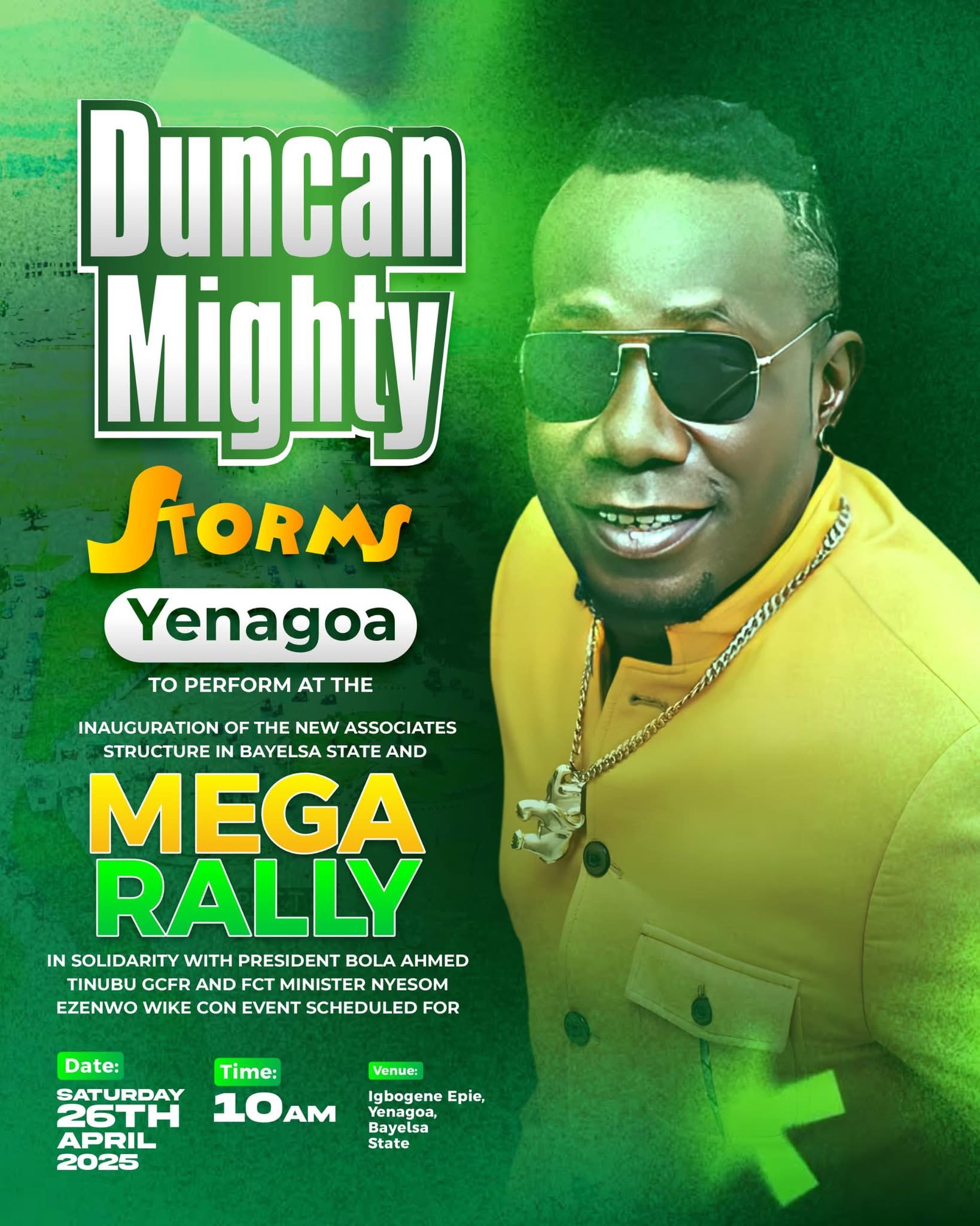 Popular Afrobeats artist, Duncan Mighty, is set to perform at the New Associates mega rally slated to hold on Saturday, 26th April, 2025.