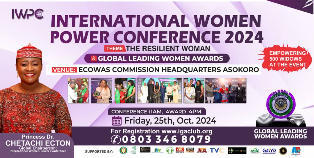 The International Goodwill Ambassador Club is proud to announce the upcoming International Women Power Conference 2024 and Global Leading Women Awards, set to take place on the 25th of October at the ECOWAS Headquarters Main Conference Hall in Asokoro, Abuja. This prestigious event, now in its ninth year, is part of the organization’s broader mission to uplift women leaders across the globe, with its sister event, the Africa Leading Women Conference and Awards holding on the 8th of December at Manchester Hilton UK, playing a complementary role.