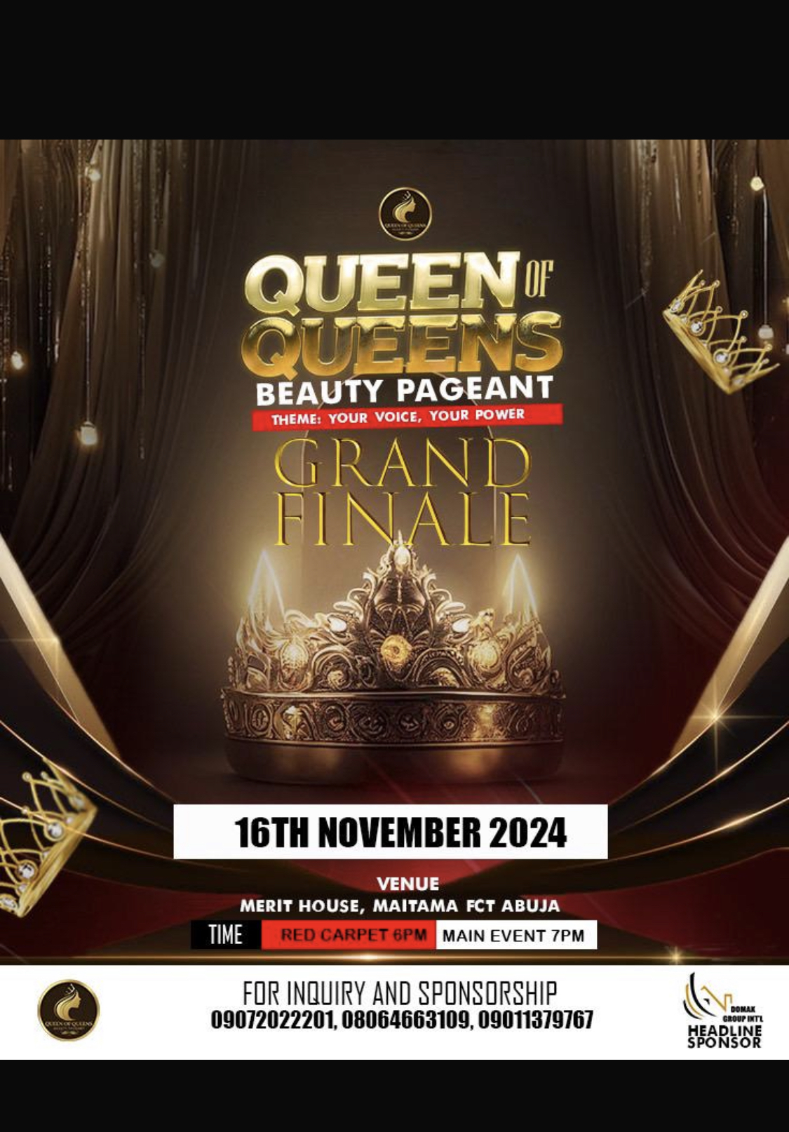 Plans have been concluded for the hosting of the long-awaited Queen of Queens beauty pageant in Abuja which organisers say will be the biggest and boldest effort to harness the potentials of women and recognise individuals expanding the horizon for the nation’s development.