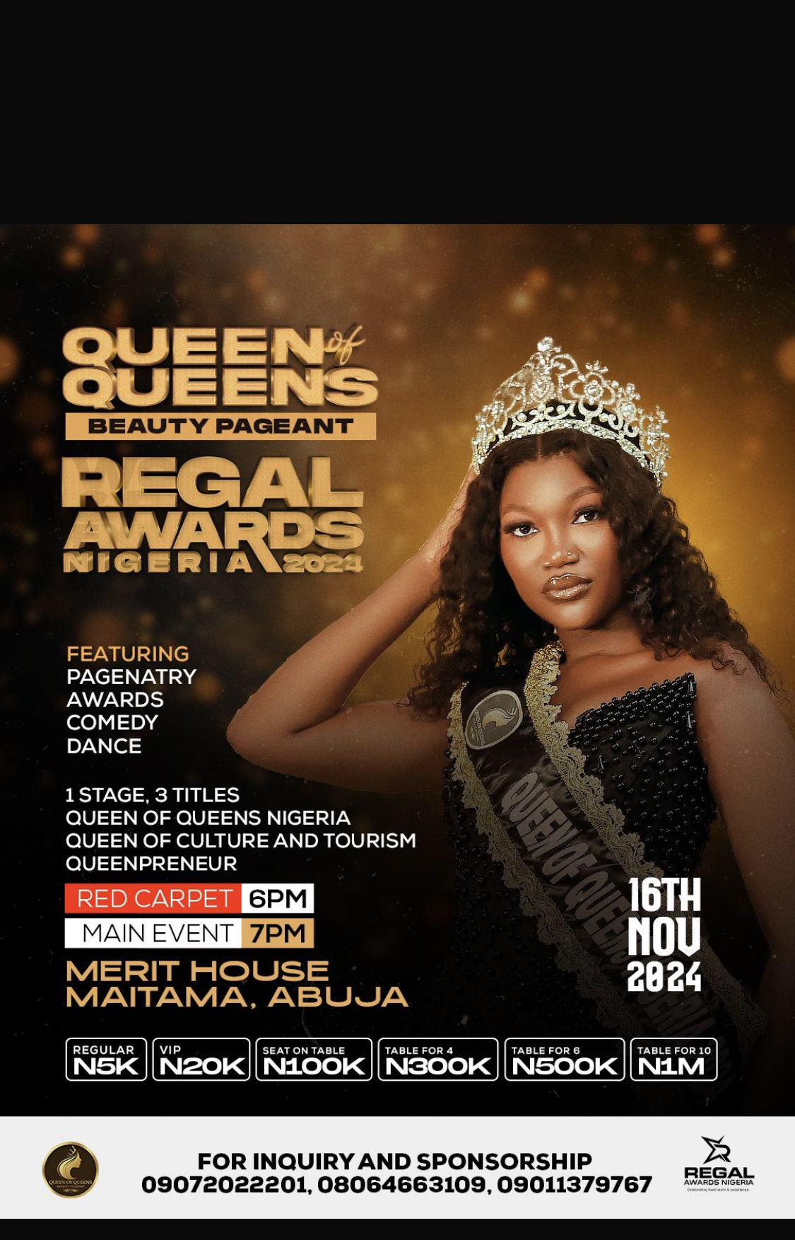 Queen Of Queens Beauty Pageant, Regal Awards Nigeria To Take Centre Stage This Weekend