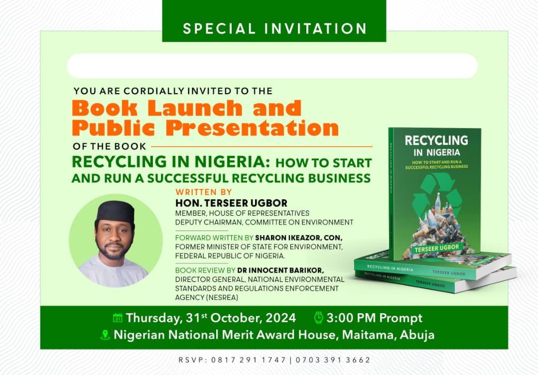 Written by the Deputy Chairman of the House Committee on Environment, Hon. Terseer Ugbor, the 171-page book also provides insight into the concept of recycling, educating readers on the processes, procedures, policies, and regulations that guide recycling activities in Nigeria and around the world.