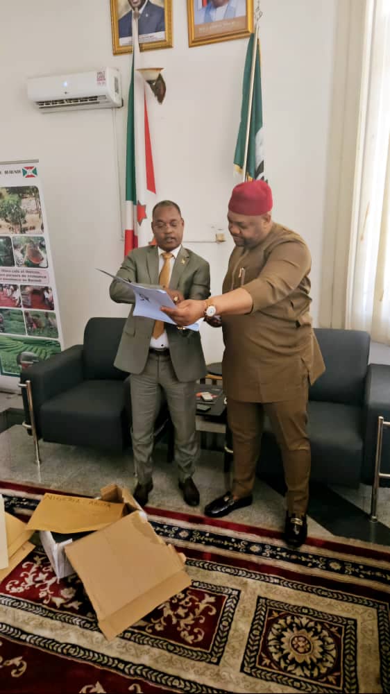 Hon. Jim Okolo Chimezie, a UN accredited international election observer and the Nigerian National Coordinator, Nouvelle Perspective International has met with the Burundi’s ambassador to Nigeria, Ambassador Edouard Nduwimana in his office in Abuja.