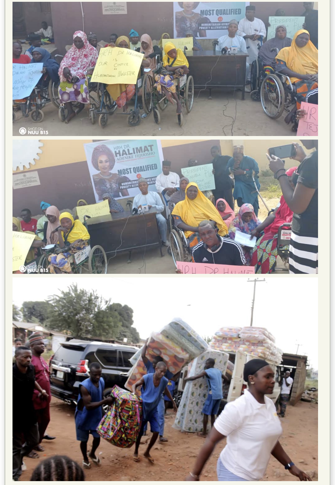 “We find it worthy to recommend Dr. Halimat Adenike Tejuosho as the most qualified as Minister for the Ministry of Humanitarian Affairs and Poverty Alleviation in recognition of her selfless services to the nation and the less privileged, especially to us with disabilities, she is a pillar of support, she has been providing shelter, food, scholarship, paying of medical bills and many more for us, It is crucial to have individual who is a humanitarian and compassionate towards people like us to oversee the affairs of this particular ministry and that person is Dr. Halimat Adenike Tejuosho.