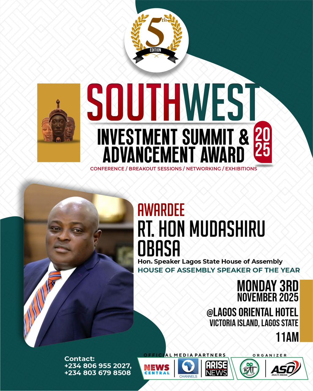 Rt Hon Obasa to receive House of Assembly Speaker of the Year at the 5th Southwest investment summit and advancement award 2025