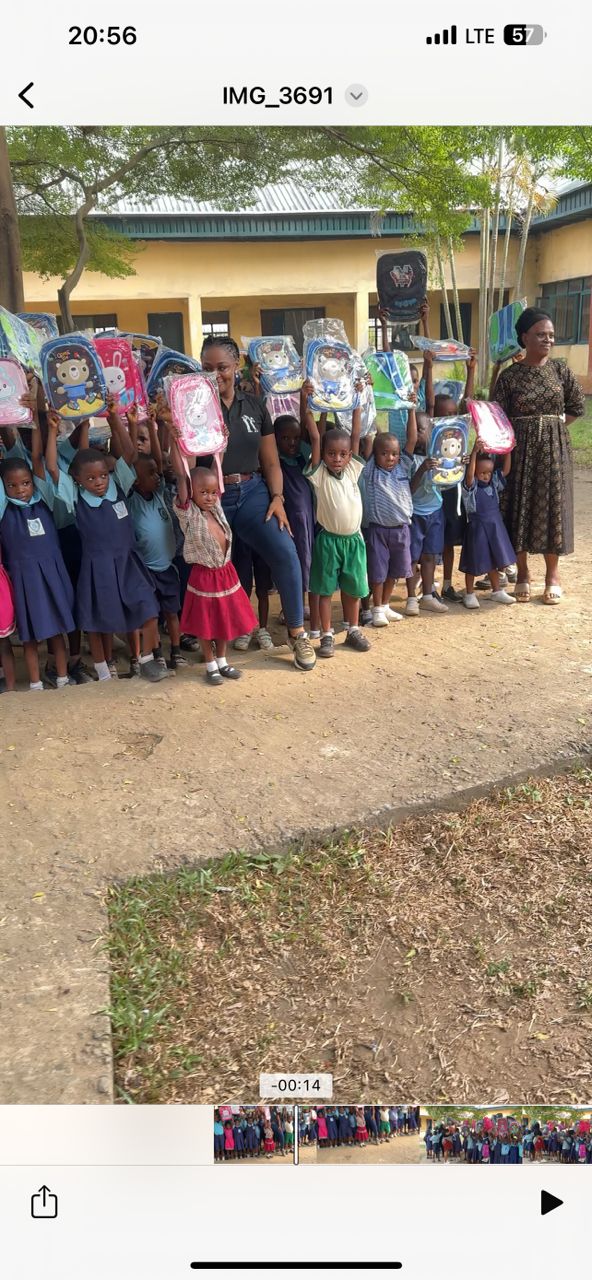 Materials distrubuted include 210 school bags, 50 exercise books and other writing items.