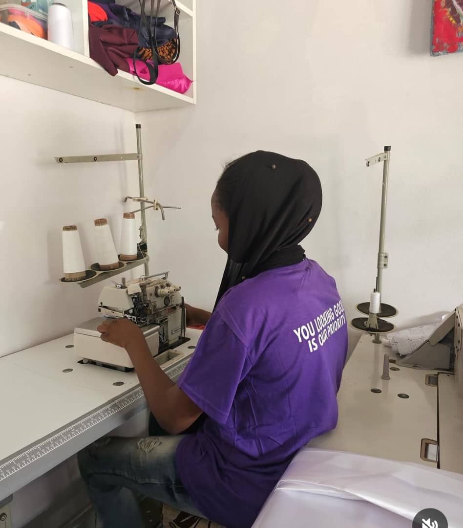 During a visit of officials of the firm to Towbee Stitches, it was observed that her fashion line has received a boost as she has acquired more equipment to support her, in addition to engaging seven employees working with her and learning the trade.