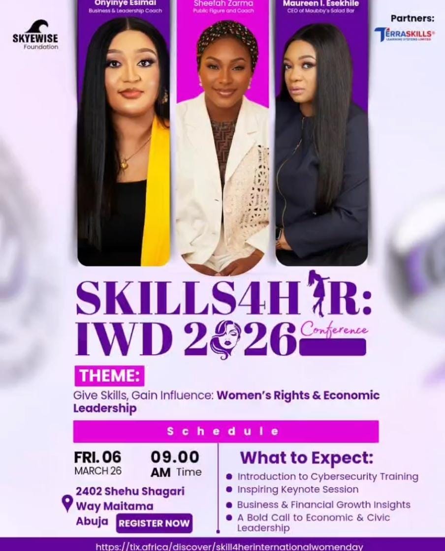 Run by Skyewise Group, the Foundation will colourfully mark the global celebration in Abuja on Friday, March 6, 2026. The conference, themed “Give Skills, Gain Influence: Women’s Rights & Economic Leadership,” is designed to inspire, train, and position women for greater economic participation and leadership.