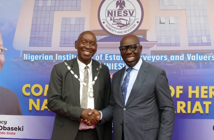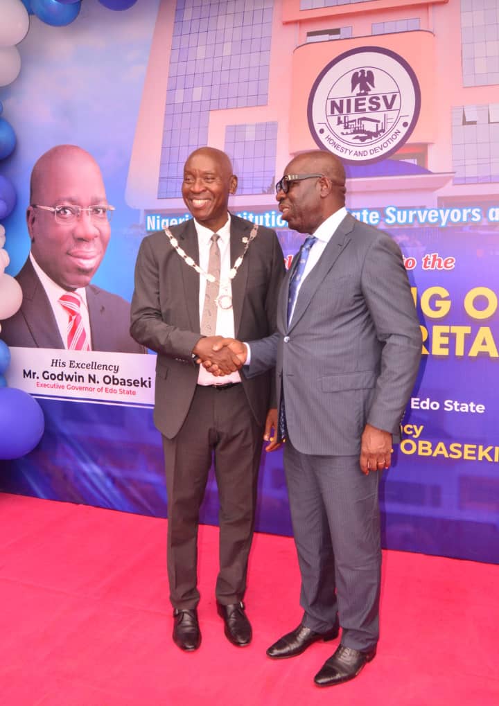 The Nigerian Institution of Estate Surveyors and Valuers on Thursday Marc 21st 2024, officially unveiled her new elegant National Headquarters and National Secretariat to the public. Under the leadership of ESV Johnbull Amayaevbo, the new edifice which is a six-storey building had attained 100% completion, and was commissioned by the executive governor of Edo State, Godwin Obaseki. With state-of-the-art infrastructure and sublime finishing, the impressive new headquarters and edifice has a unique importance in the history of NIESV as the first time ever, her own building will be unveiled.