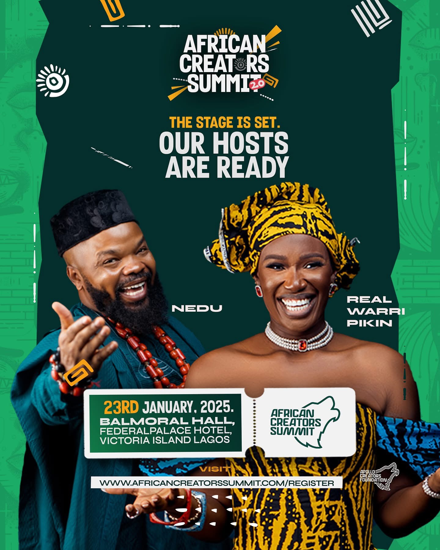 The wait is over! Meet your incredible hosts for the African Creators Summit 2025 — @nedu_official and @realwarripikin