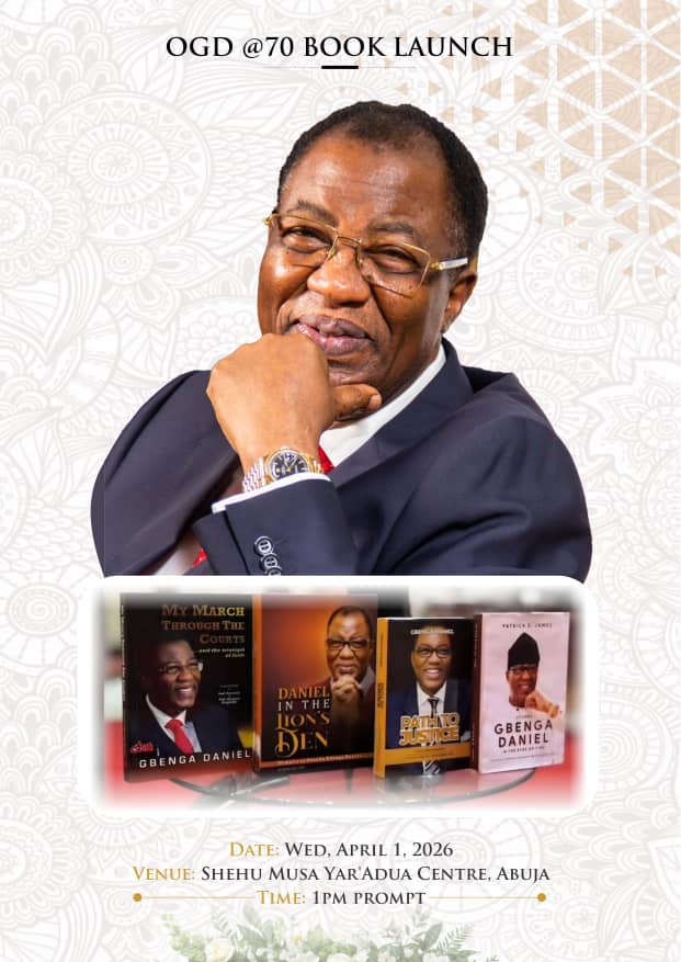 The landmark event, expected to command national attention, will feature the unveiling of four significant publications chronicling Daniel’s political journey, legal battles, and legacy. The books include “Daniel in the Lion’s Den” (Revised Edition), “My March Through the Court,” “Path to Justice,” and “Otunba Gbenga Daniel in the Eyes of Time.”