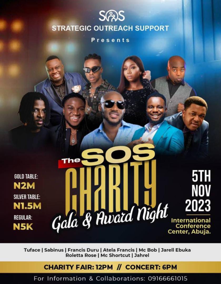 Top celebrities are set to thrill residents of Abuja, as a leading non-governmental organisation, Strategic Outreach Support (SOS) holds its charity gala and award night.