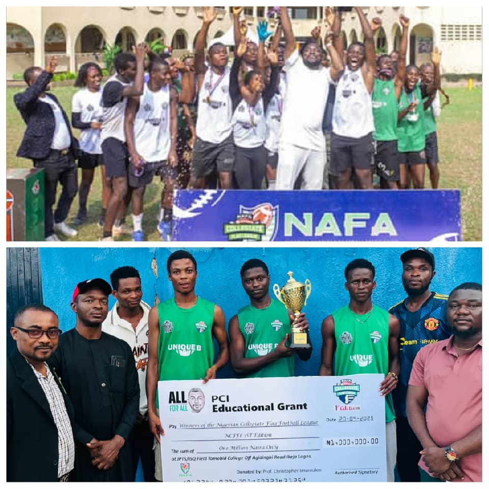 Unique Open University (UOU), Ojo, Lagos, has emerged as the overall winner of the maiden Nigeria University Flag Football Tournament, following a thrilling exhibition event organized by the Nigeria Collegiate Flag Football League (NCFFL)—an initiative of the Nigerian American Football Association (NAFA).