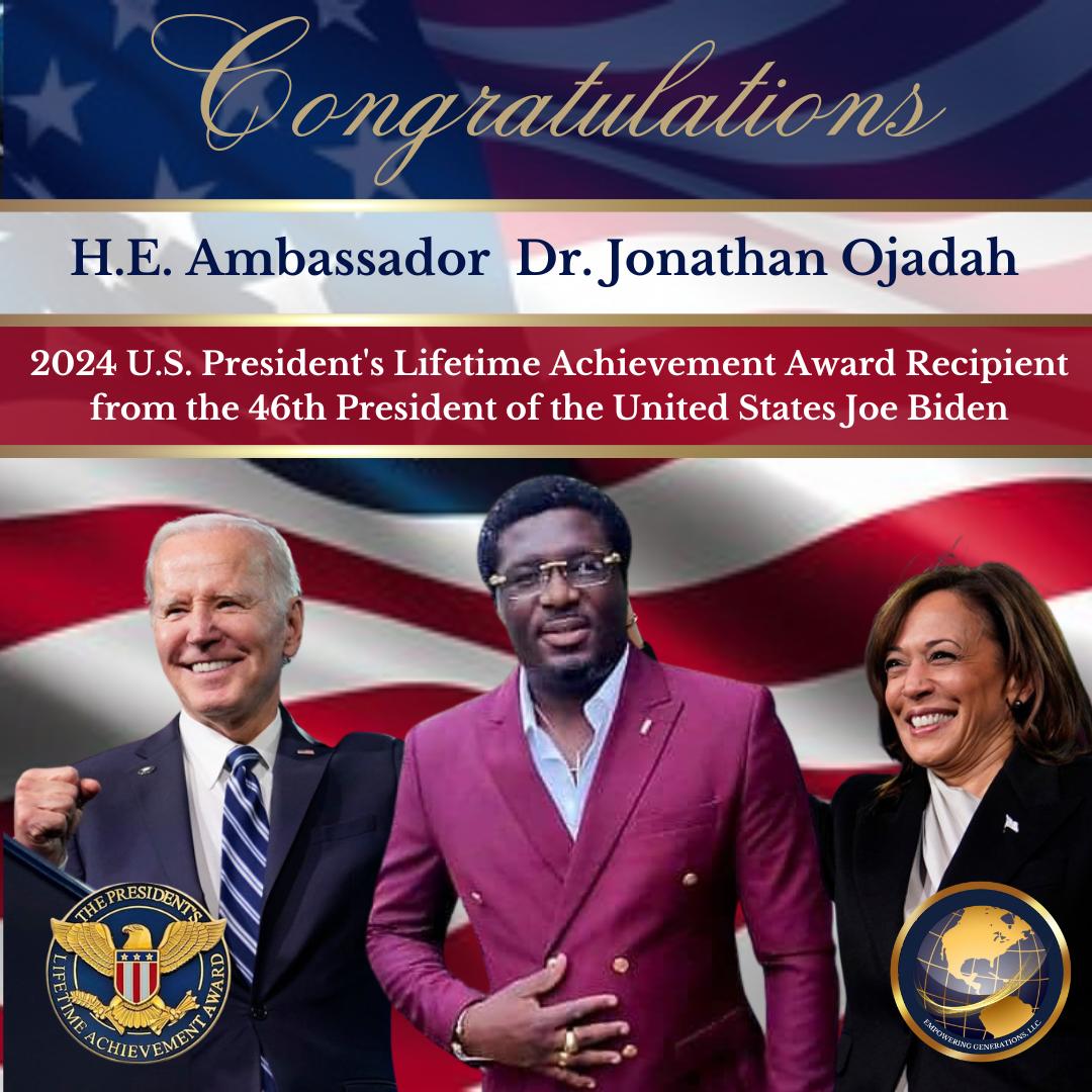 This honour also confers on him the privilege of recommending distinguished individuals from Africa for this esteemed recognition, an initiative under the patronage of His Excellency, Jo Biden, President of the United States of America.