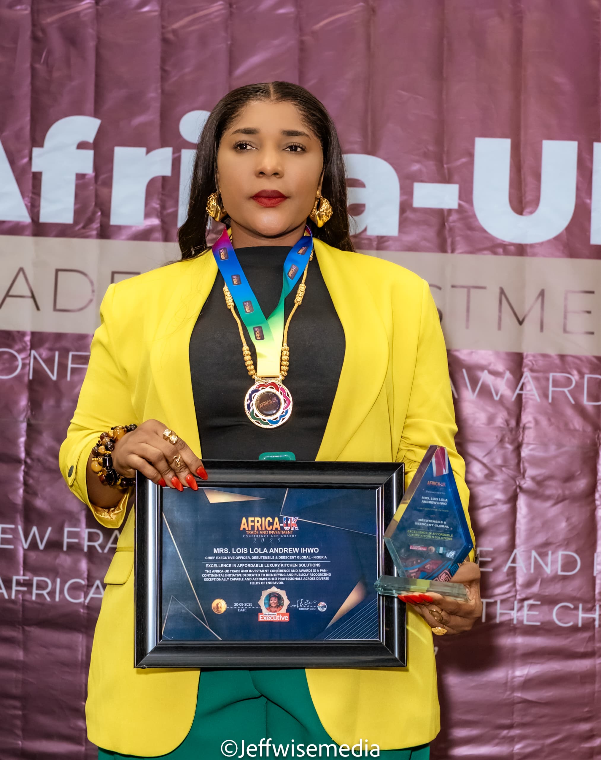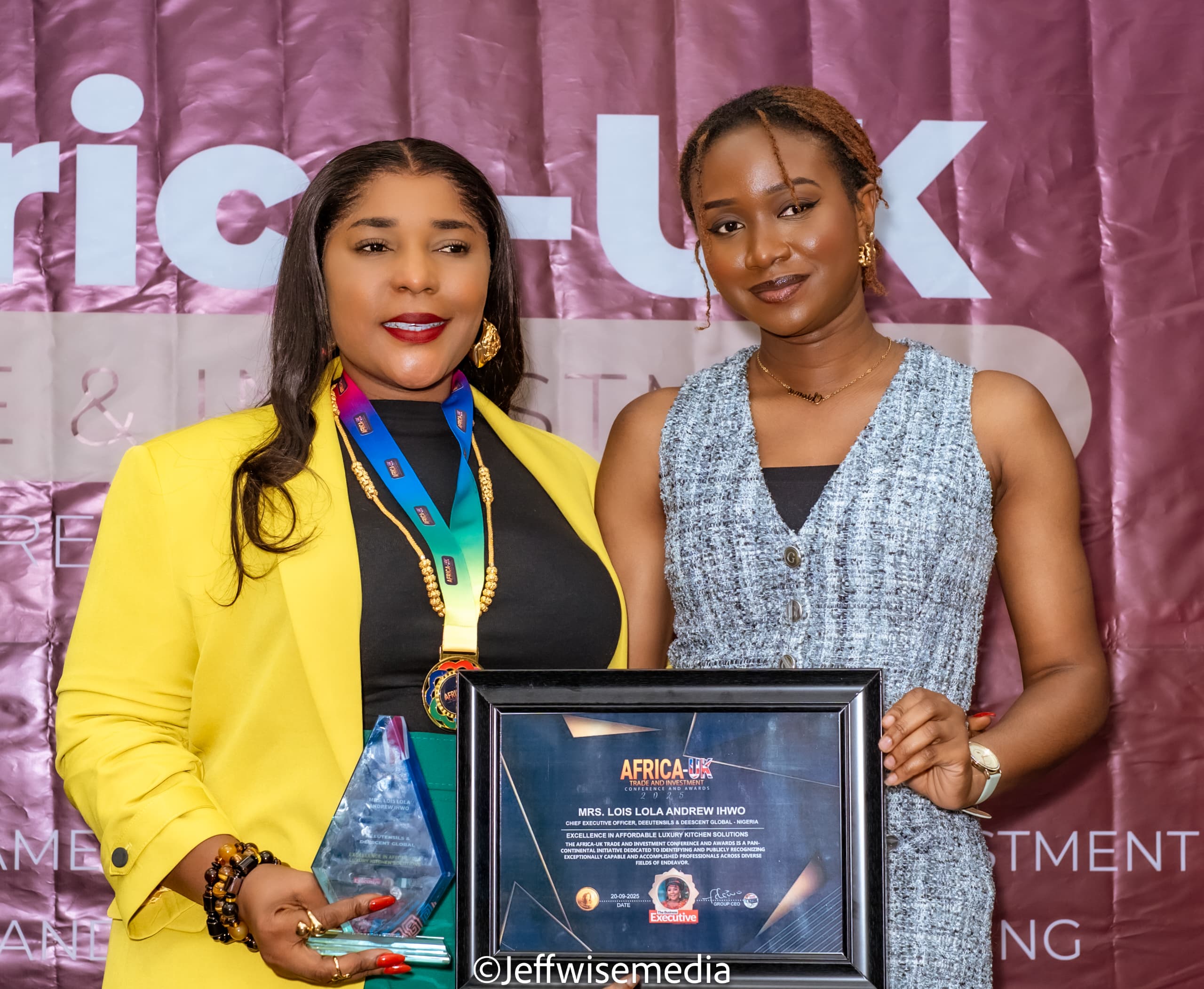 Founder and Chief Executive Officer of Dee Utensils, Lois Andrew Ihwo has been decorated with the honour of Excellence in Affordable Luxury Kitchen Solution at the Africa–UK Trade & Investment Conference & Awards 2025, held at the illustrious Royal National Hotel, London, alongside Africa’s finest business icons.