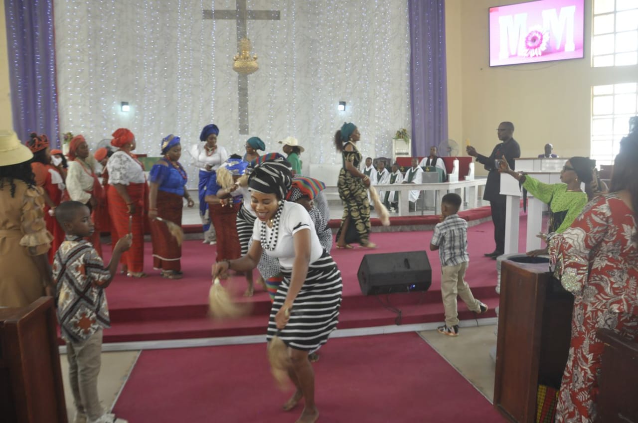 The women comprising various Nigerian tribes are classified in groups, then given opportunity to entertain the entire congregation with the display of cultural dance.